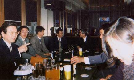 二次会は 佐大空手道部の貸し切り 状態に近い状態でした。 先輩方、現役選手は 歓談と歌とお酒で 大いに楽しみました。 |