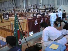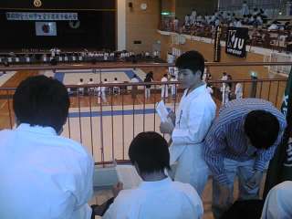 試合が終わっても 上位の選手の試合を見て 研修する選手達。 近年の選手は 全て決勝戦まで試合を見せており 閉会式にも必ず参加させるようにしています。 |