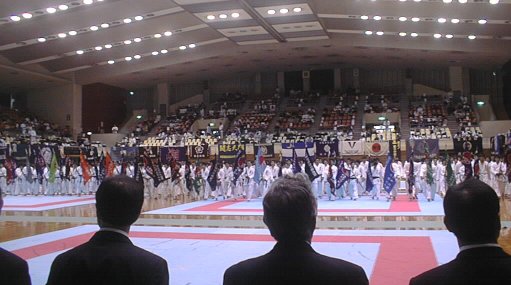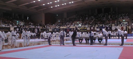 開会式 全国レベルの開会式はやはり違います。 審判も初めて会う 関西以西の選りすぐりでしかも大人数です。 報道もスポーツ新聞から、空手雑誌の記者が集結。
