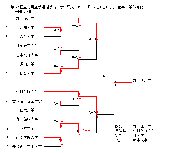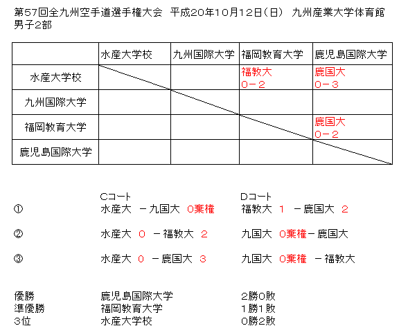 第57回全九州空手道選手権大会 日時:平成20年10月12日(日) 場所:九州産業大学体育館