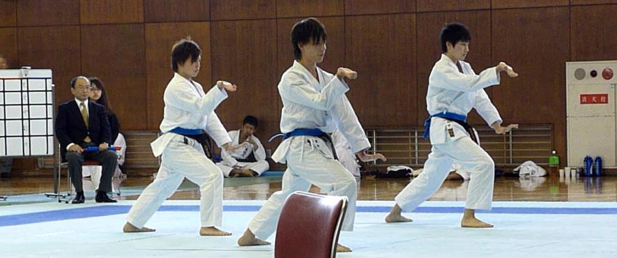 第61回全九州大学空手道選手権大会 日時: 平成24年10月21日 9時10分開会 場所: 中村学園大学 体育館