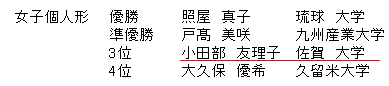 | 3ˆÊ | ¬“c•”@—F—Žq | ²‰ê@‘åŠw | |