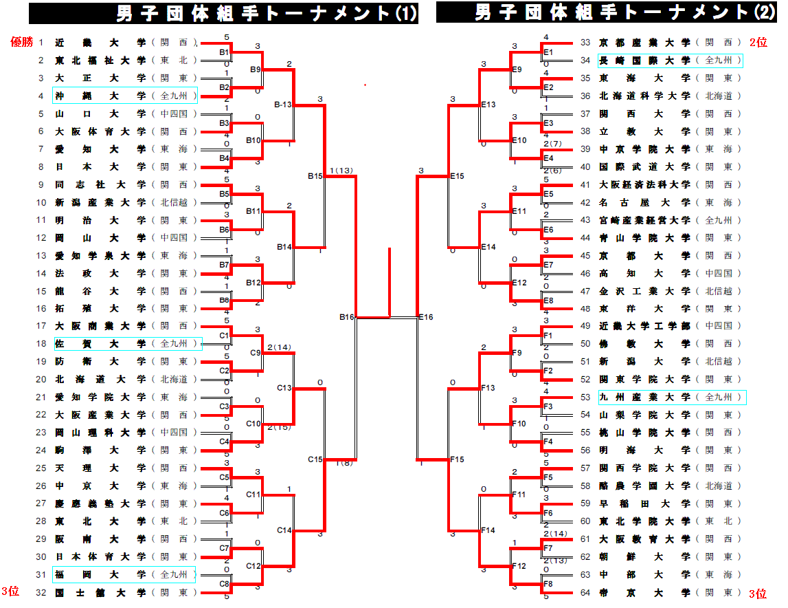 以下はトーナメント表は全日本学生空手道連盟WEBサイトの試合結果pdfより引用しています。