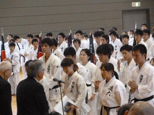 | 入賞おめでとうございます。 男子個人 新人戦 組手 3位 大坪 将之 佐賀大学 女子個人 新人戦 組手 準優勝 中里 未緒 佐賀大学(試合中の負傷で写真撮影時不在) 女子組手団体戦 3位 佐賀大学 |