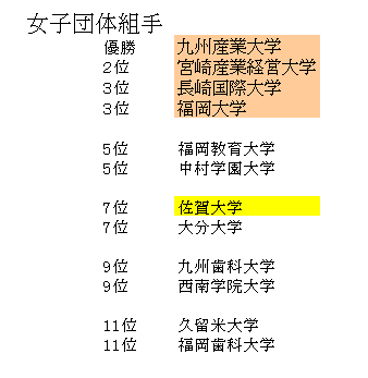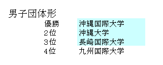 第65回全九州大学空手道選手権大会 全九州学連(福岡地区) 主管:九州大学 会場:九州産業大学 日時:2016年10月16日(日)09:00〜16:00 総合結果