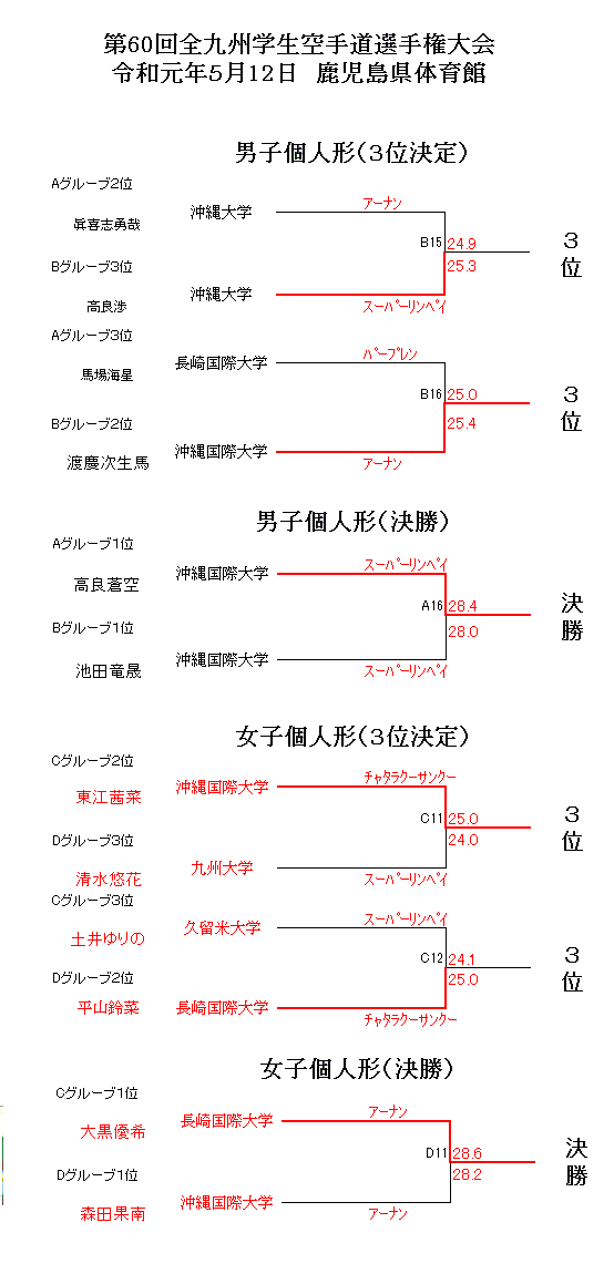 第60回全九州学生空手道選手権大会 令和元年5月12日(日)AM9:00 鹿児島県総合体育センター体育館