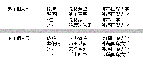 男子形予選 女子形予選 男女形準決勝 男女形決勝/3位決定 佐賀大成績 HOMEへ