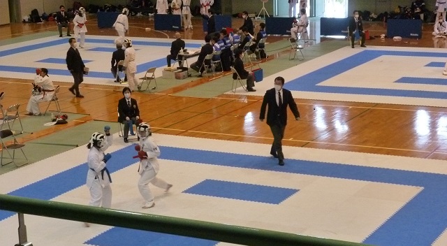 | 岡本先輩 と 濱田先輩(右から2番目) | 形の審査中の光冨先輩(中央) | ||