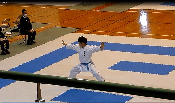第2プールで最高スコアを出した三神会の神代選手 長崎国際大は九州で一番形競技に強い大学です。 |