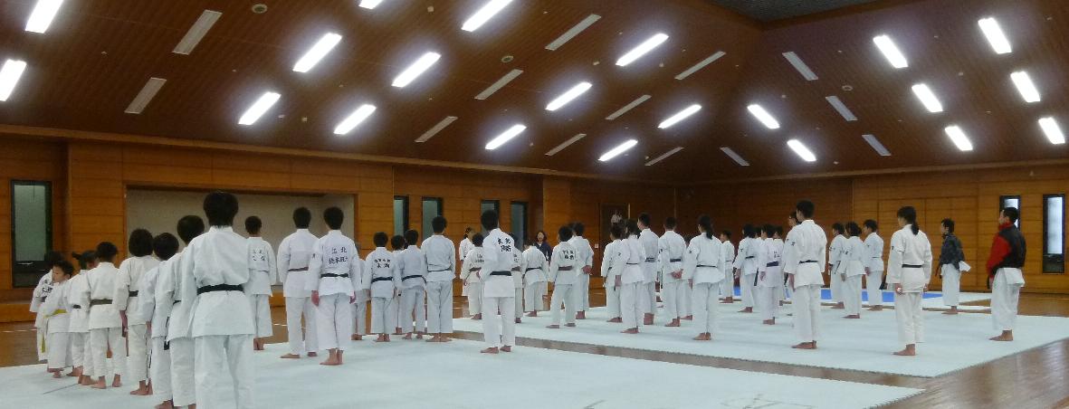 大学、高校、中学、道場の指導者が指導してゆく合同練習です。
