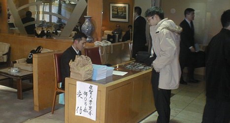 | 受付をしていただいている岡本先輩、名札も岡本先輩が準備していただきました。 |
