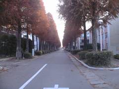 寒さが厳しさを増し 構内の街路樹も真っ赤に色ずく中