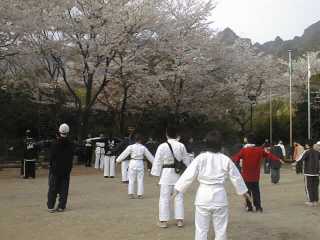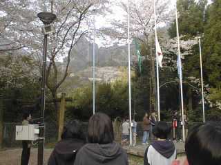 早朝練習が終わって 青少年の家の「朝の集い」に参加しました。 春休みの最中だけ有って ボーイスカウトや小中学生などの団体が多かったです。