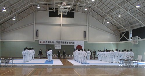 | 会場の長崎大学医学部体育館。長崎大学医学部保険医療技術短大敷地内にあります。 | |