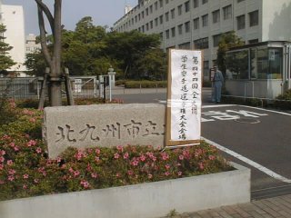 | 北九州大学正門 | 立派な校舎 | 会場の体育館 |