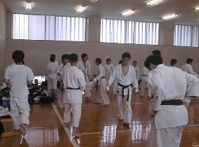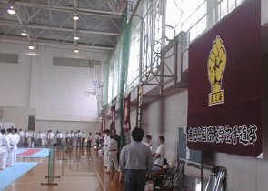 | 会場の九州大学教養部 (福岡市六本松) | 体育館で調整する 他校の選手達 | |