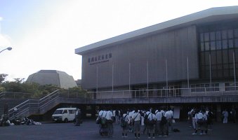 続々と福岡県庁横の 福岡市民体育館に宿泊ホテルから集まりました。