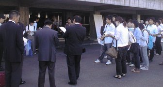 | 早朝から会場に集まった参加選手。 | 宿泊ホテルからタクシで集まる関西の運営スタッフ |