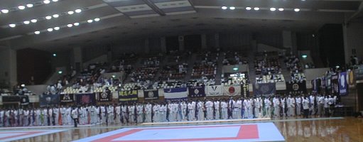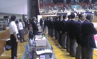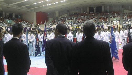 開会式 全国レベルの開会式はやはり違います。 審判も初めて会う 関西以西の選りすぐりでしかも大人数です。 報道もスポーツ新聞から、空手雑誌の記者が集結。