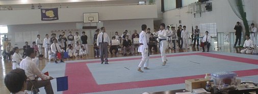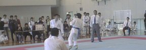 青帯 左側 山下君、技有り1ポイント・ゲット |