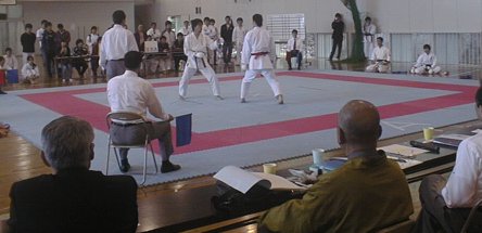 大激戦の個人戦優勝戦を戦う山下君:右側青帯 |