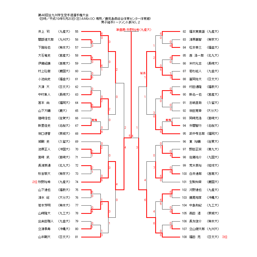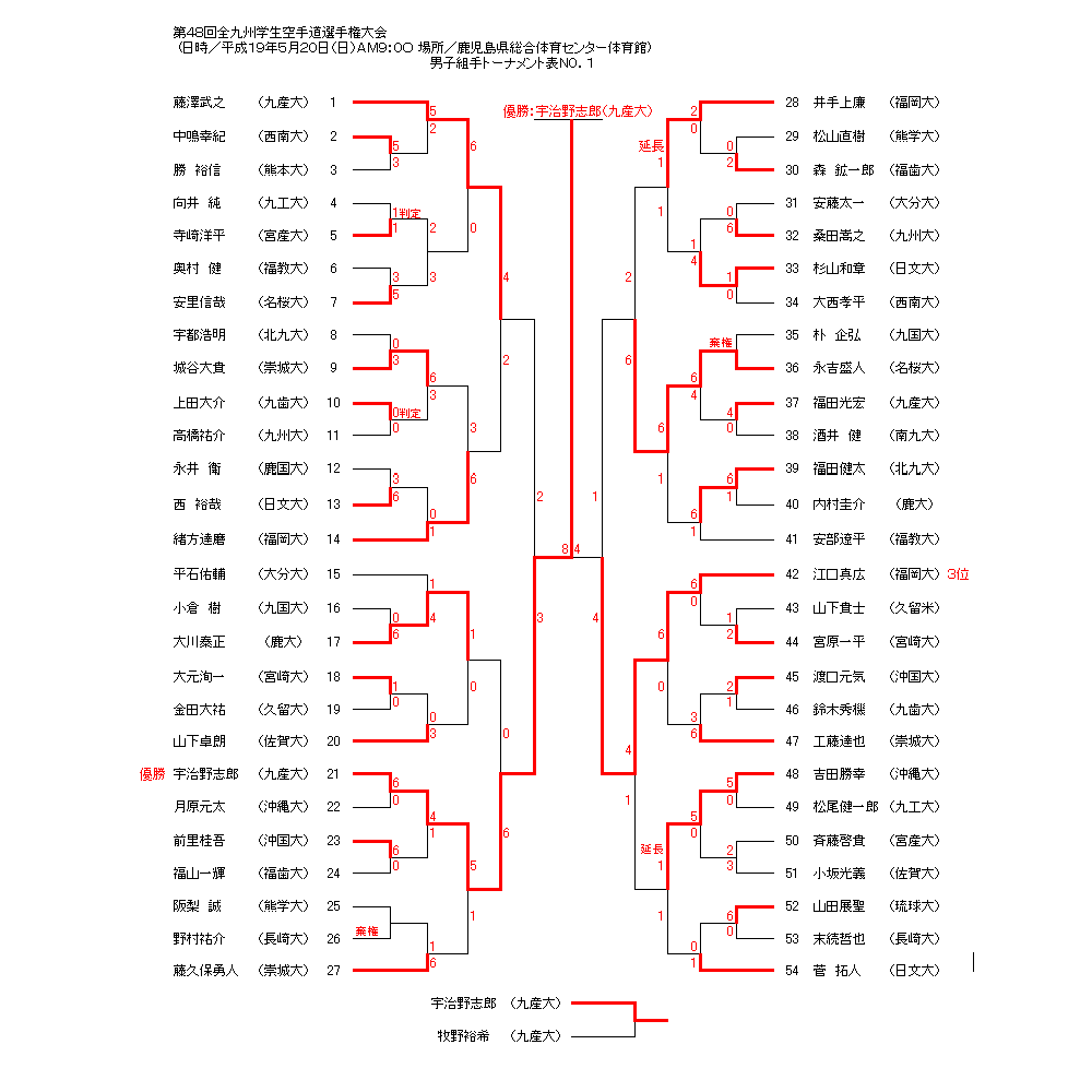 第48回全九州学生空手道選手権大会 平成19年5月20日(日) 鹿児島県総合体育センター体育館