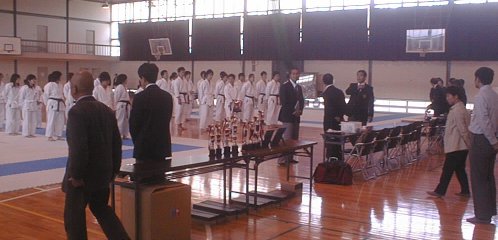 スポーツセンター2Fの 空手道部道場で審判講習会をした後に 床を張替えた体育館で大会を開始しました。