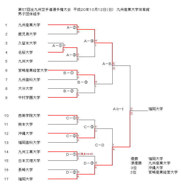 第57回全九州空手道選手権大会 日時:平成20年10月12日(日) 場所:九州産業大学体育館