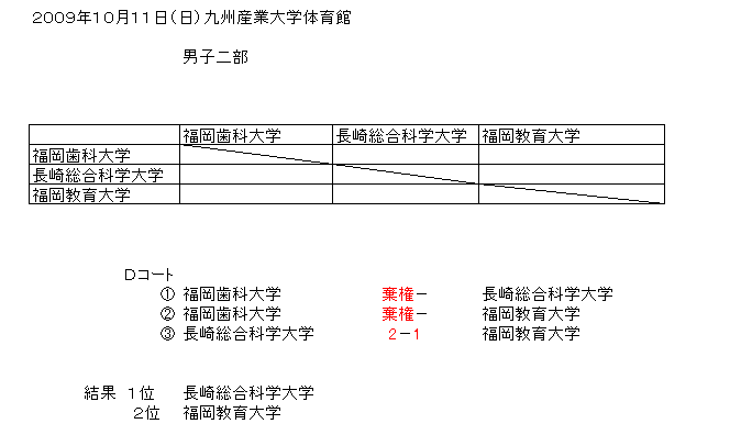 少人数の3名で男子チームが編成できるのが 男子二部です。 福岡歯科大はインフルエンザで欠場です。