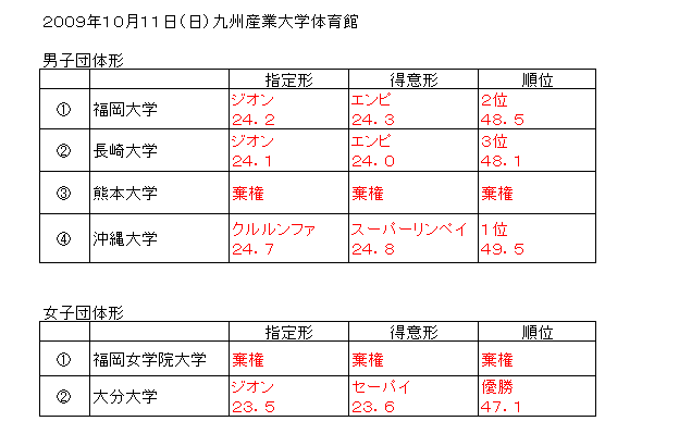 第58回全九州学生空手道選手権大会 2009年10月11日(日) 九州産業大学体育館