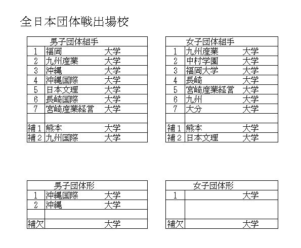 第59回全九州空手道選手権大会 日時:平成10年10月10日(日) 場所:西南学院大学体育館 主催:全九州学生空手道連盟 主管:福岡地区大学空手道部 後援:財団法人 全日本空手道連盟・九州地区空手道協会 財団法人 福岡県体育協会・福岡県空手道連盟 福岡市・福岡市教育委員会