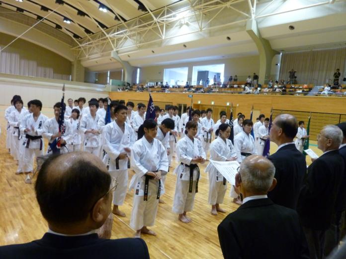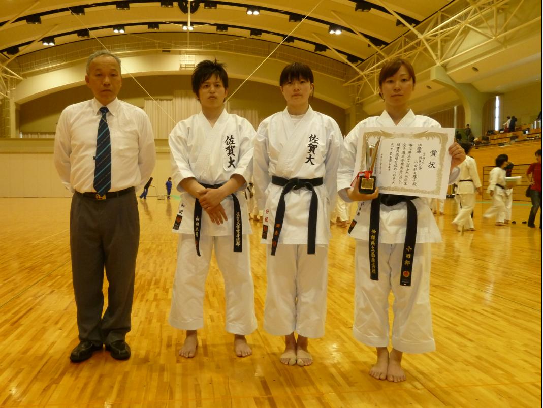 閉会式で表彰を受ける 女子個人形準優勝の小田部さん(前列左から2番目)