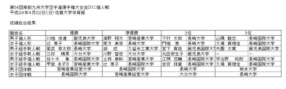 第54回南部九州大学空手道選手権大会並びに個人戦 平成24年4月22日(日)佐賀大学体育館