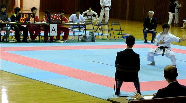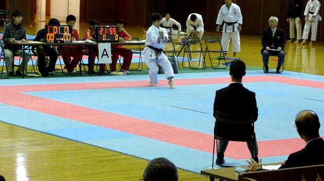 | 山田(2年)ニーパイポで男子形予選に挑みます | ||