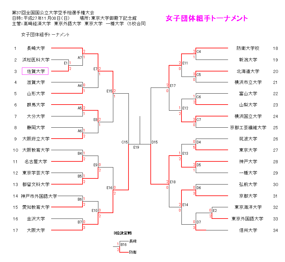 第37回全国国公立大学空手相選手権大会 日時:平成27年11月08日(日) 場所:東京大学御殿下記念館 主管:高崎経済大学 東京外語大学 東京大学 一橋大学 (5校合同主管