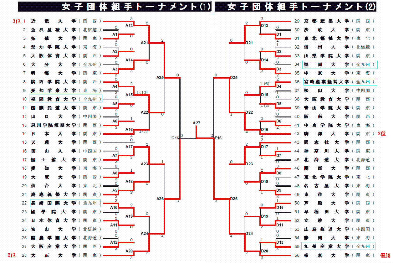 以下はトーナメント表は全日本学生空手道連盟WEBサイトの試合結果pdfより引用しています。