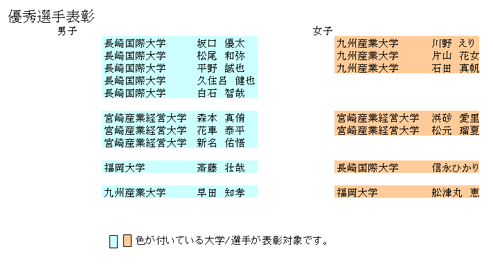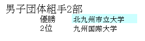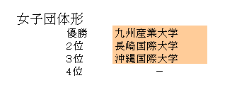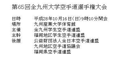 第65回全九州大学空手道選手権大会 全九州学連(福岡地区) 主管:九州大学 会場:九州産業大学 日時:2016年10月16日(日)09:00〜16:00 総合結果