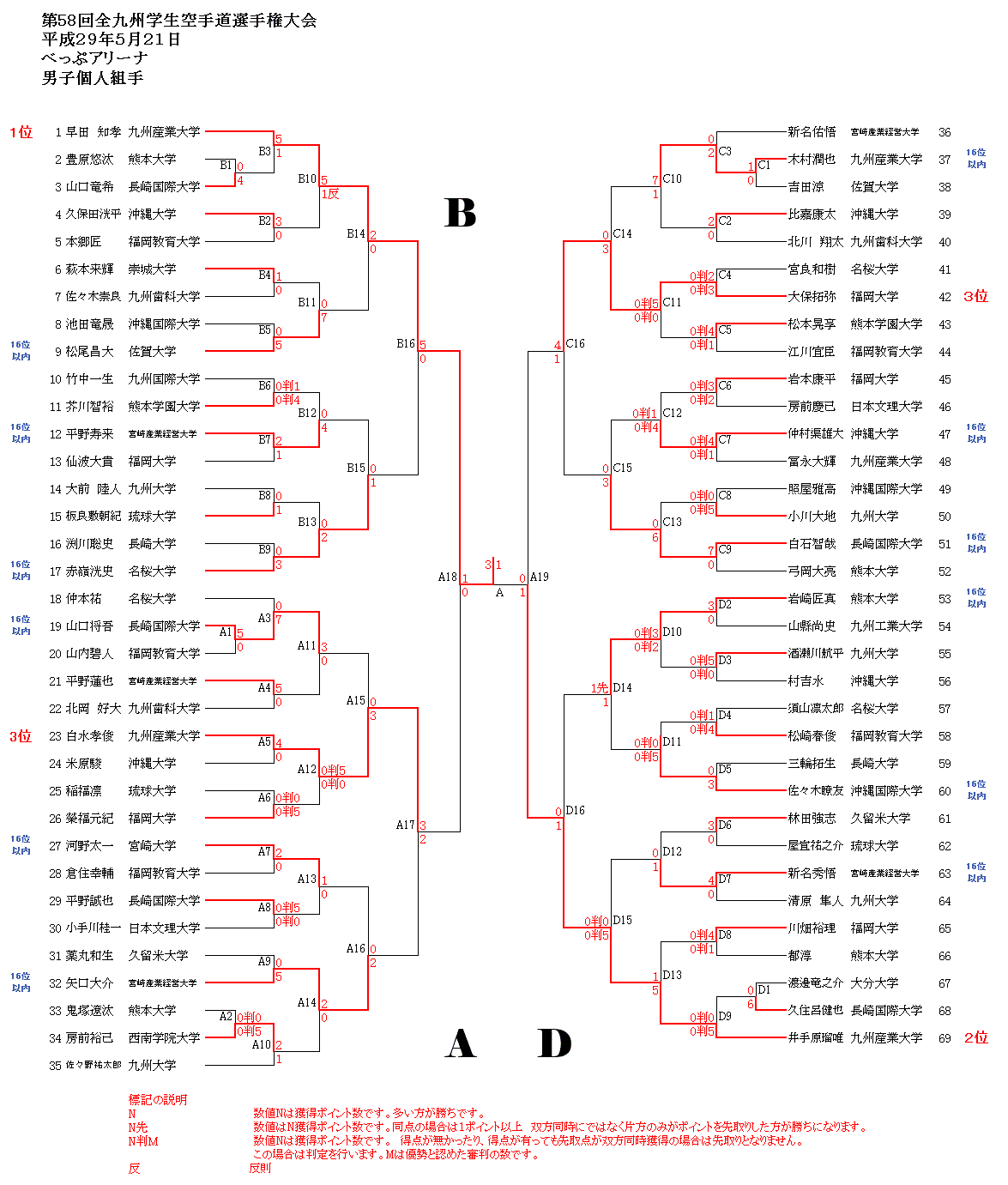 開会式  個人戦表紙  個人戦総合成績  男子組手  女子組手  男子形  女子形  佐賀大結果  HOMEへ