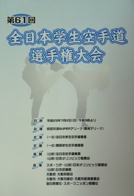 第61回全日本学生空手道選手権大会(全日本個人戦) 日時:2017年07月02日(日曜日) 場所: 舞洲アリーナ(大阪)