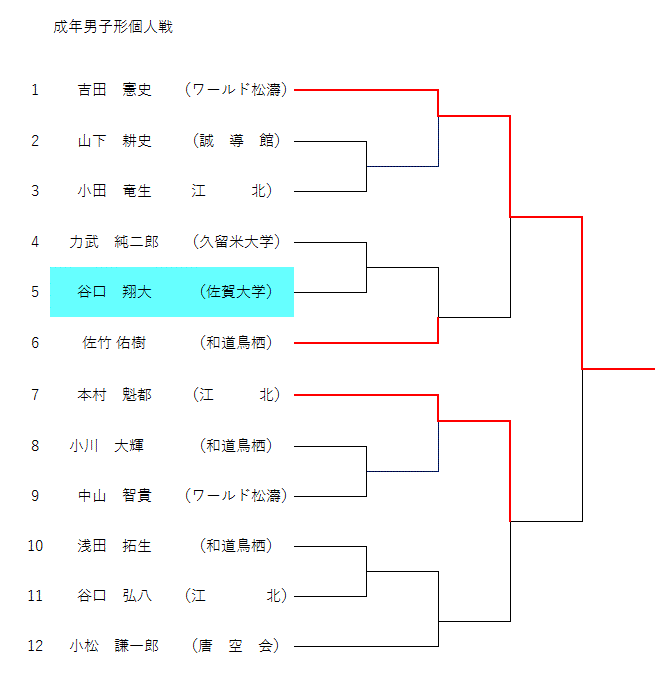 会場 開会式 佐大成年女子形 佐大成年男子形 成年男子個人形 佐大成年男子団体戦 総合結果 成年男子女子組手結果 成年男子女子形結果 成年男子団体組手結果 閉会式 HOME