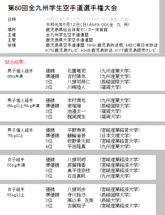 第60回全九州学生空手道選手権大会
