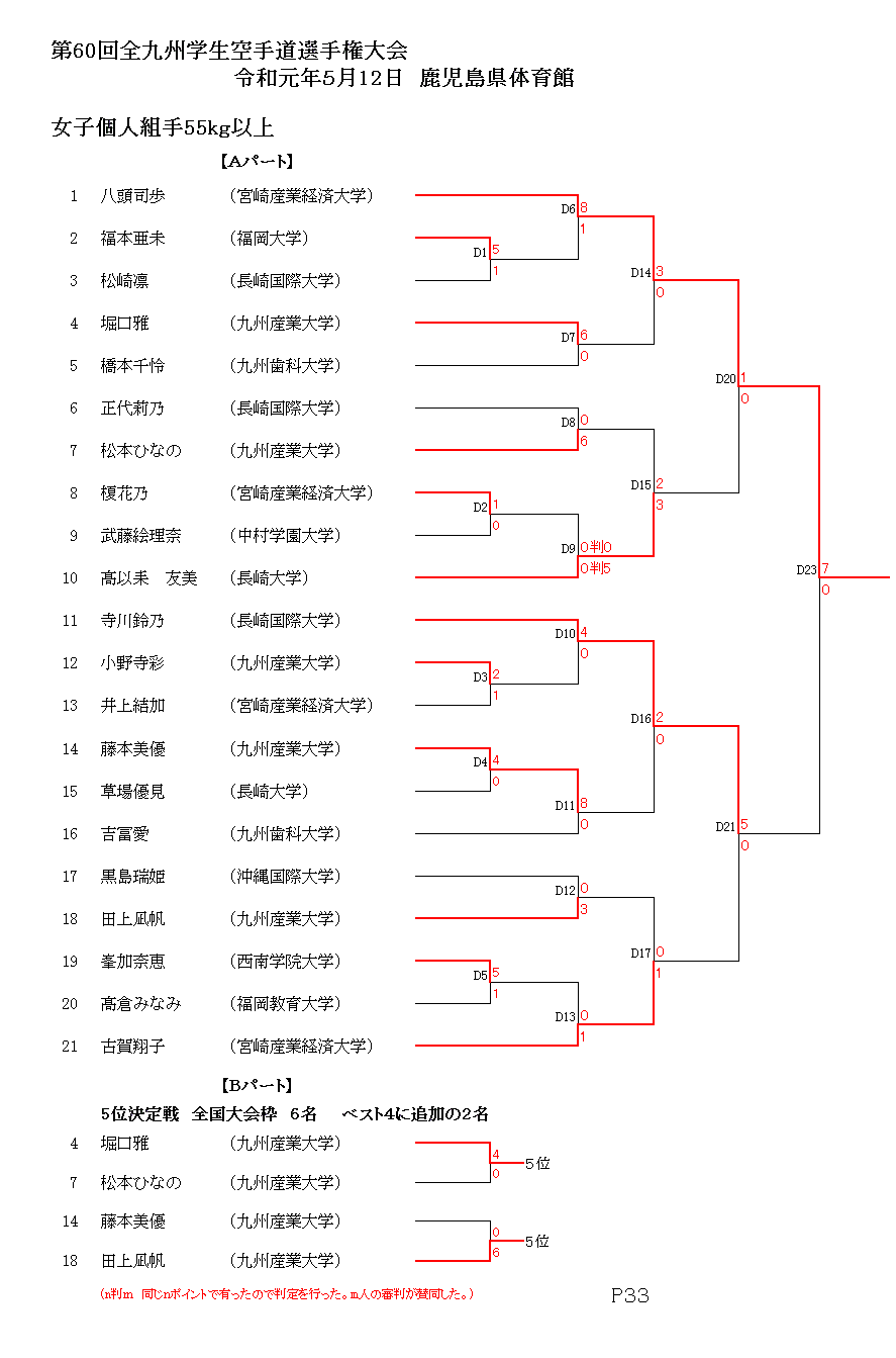 全九州個人戦開会式 全九州表紙 総合結果 男子組手-65kg 男子組手65-75kg 男子組手75-kg 女子組手-55kg 女子組手55-kg 男子形予選 女子形予選 男女形準決勝 男女形決勝/3位決定 佐賀大成績 HOMEへ