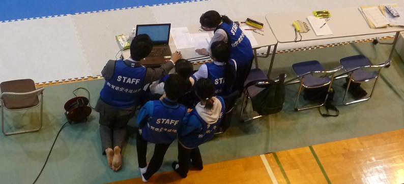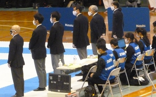 | 岡本先輩 と 濱田先輩(右から2番目) | 形の審査中の光冨先輩(中央) | ||