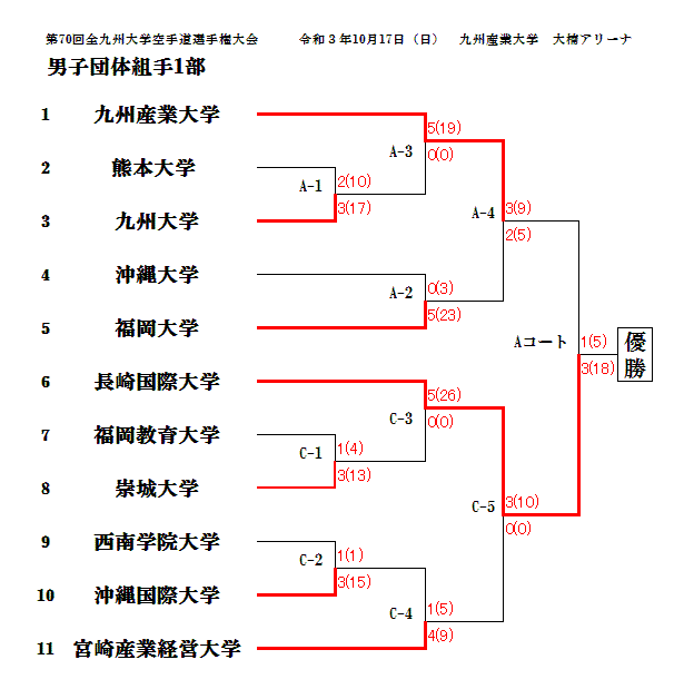 第70回全九州大学空手道選手権大会 令和3年10月17日(日)九州産業大学 大楠アリーナ