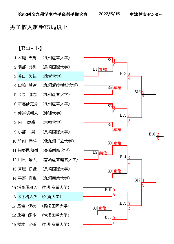 第63回全九州学生空手道選手権大会 2022/5/15 中津体育センター 男子個人組手75kg以上