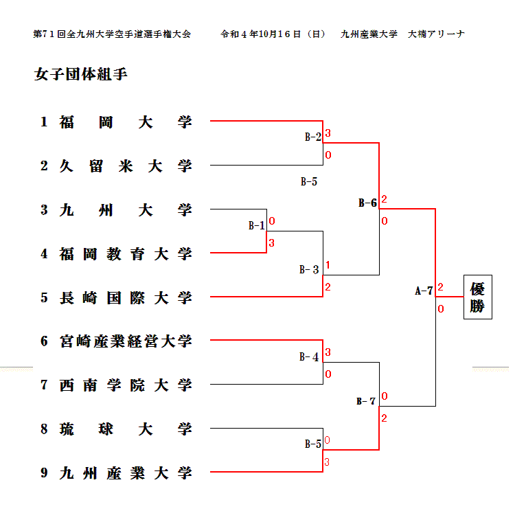 第71回全九州大学空手道選手権大会 [秋季団体戦] 令和4年10月16日(日) 九州産業大学 大楠アリーナ