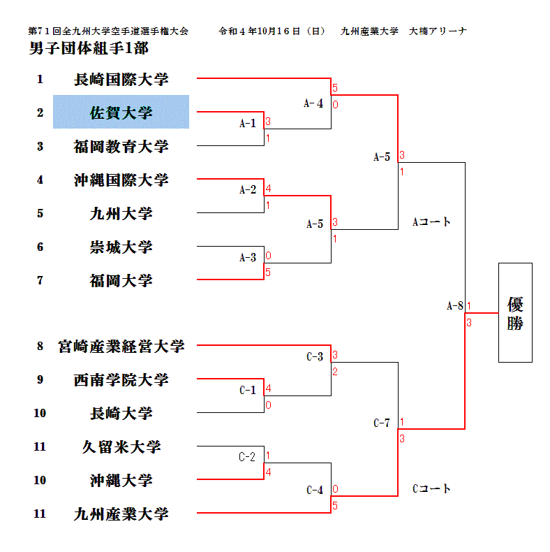 第71回全九州大学空手道選手権大会 [秋季団体戦] 令和4年10月16日(日) 九州産業大学 大楠アリーナ
