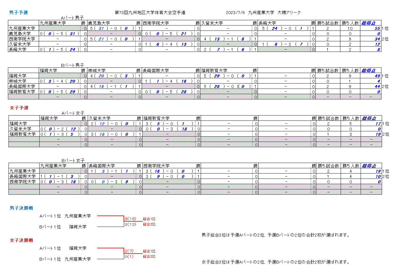 第73回九州地区大学体育大会 空手道2023  令和5年(2023) 7月9日 九州産業大学 大楠アリーナ