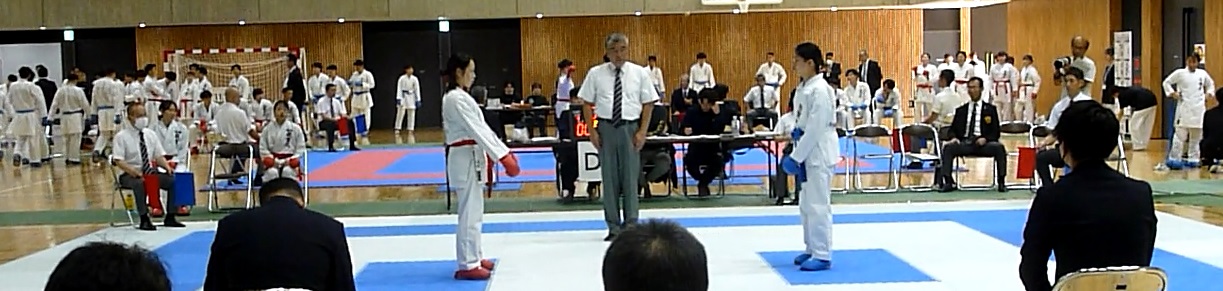 赤帯:相手の中堅は動きが良く突っ込んでの上段突きを取られる。 |