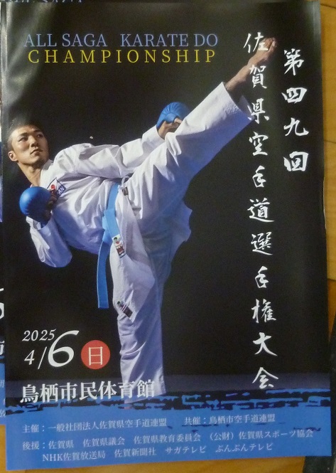 第49回佐賀県空手道選手権大会 2025/04/06 鳥栖市民会館 若葉や桜の花の満開を迎えた今日 2024佐賀国スポ 空手道部門の会場にもなった鳥栖市民体育館で 県大会が開催されました。 佐賀大空手道部からも2年生男子が出場しました。